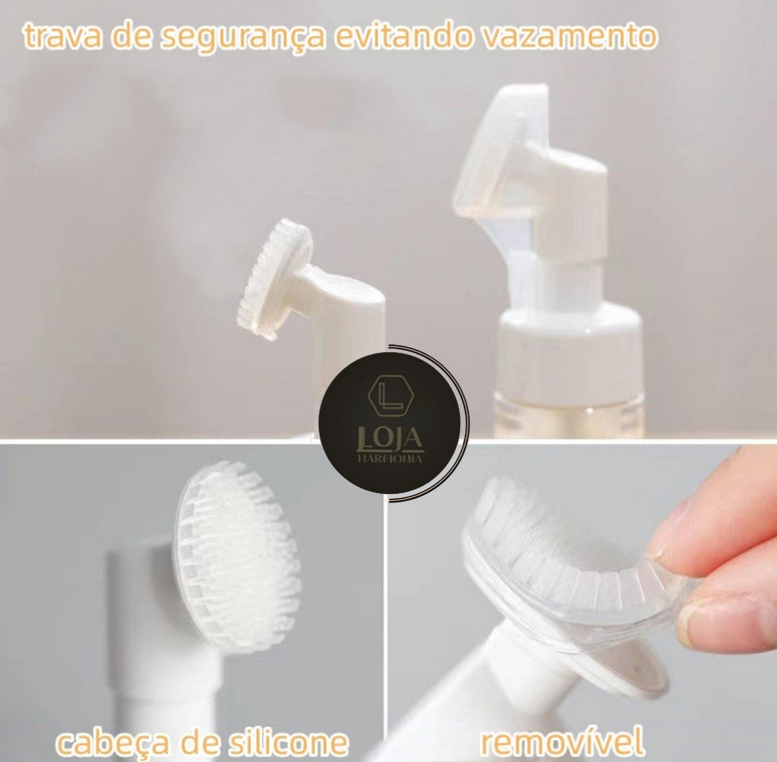 - Use a Escova de Limpeza com Cabeça de Silicone para espalhar uniformemente, massageando suavemente.